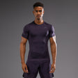 Le design moderne et sobre du rashguard à manches courtes Venum G-Fit Air en Deep Purple s'associe parfaitement avec les shorts de combat et les spats de la même collection.